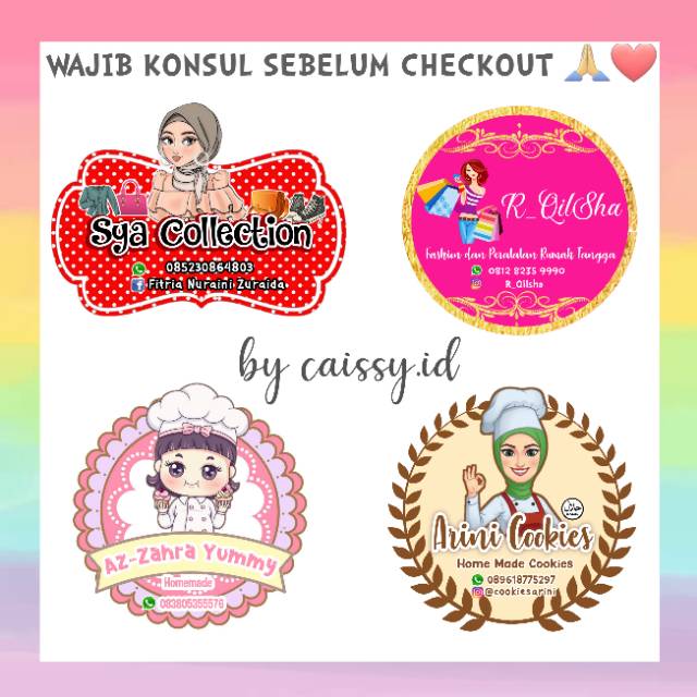 Free desain cetak stiker label logo online shop makanan minuman snack skincare nasi kotak .